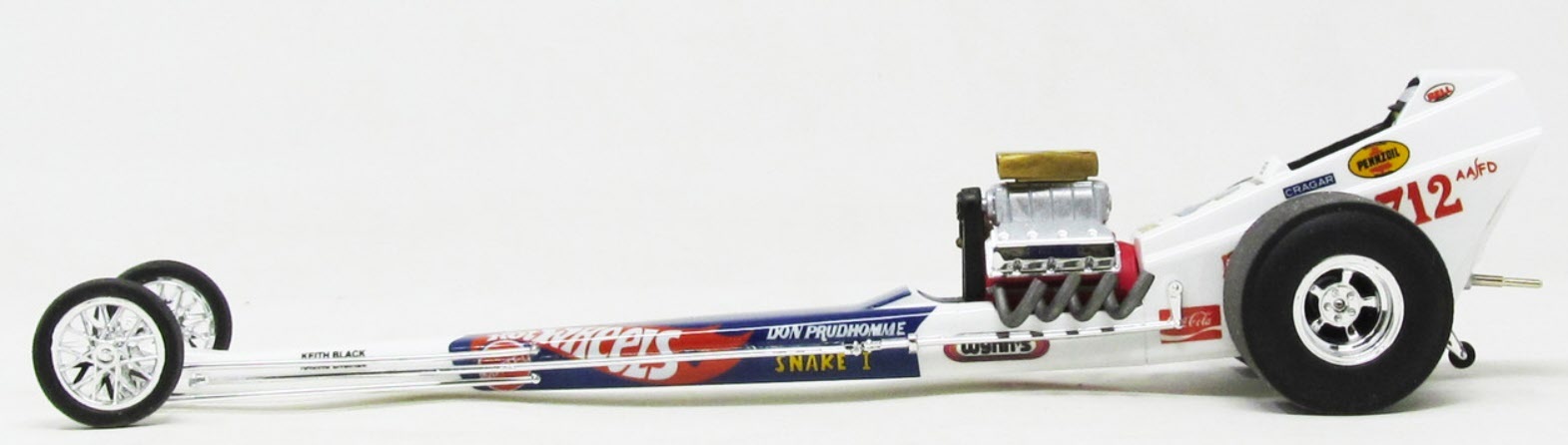 This famous rail dragster was driven by Don "The Snake" Prudhomme and has the iconic Hot Wheels sponsor decals.
