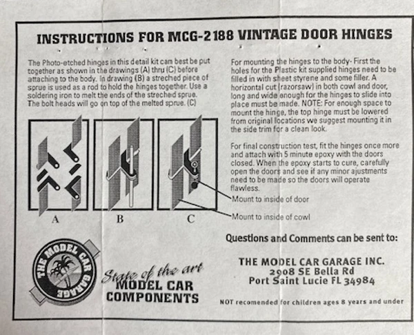 Photo etched hinge set, by Model Car Garage, 1/25 scale.